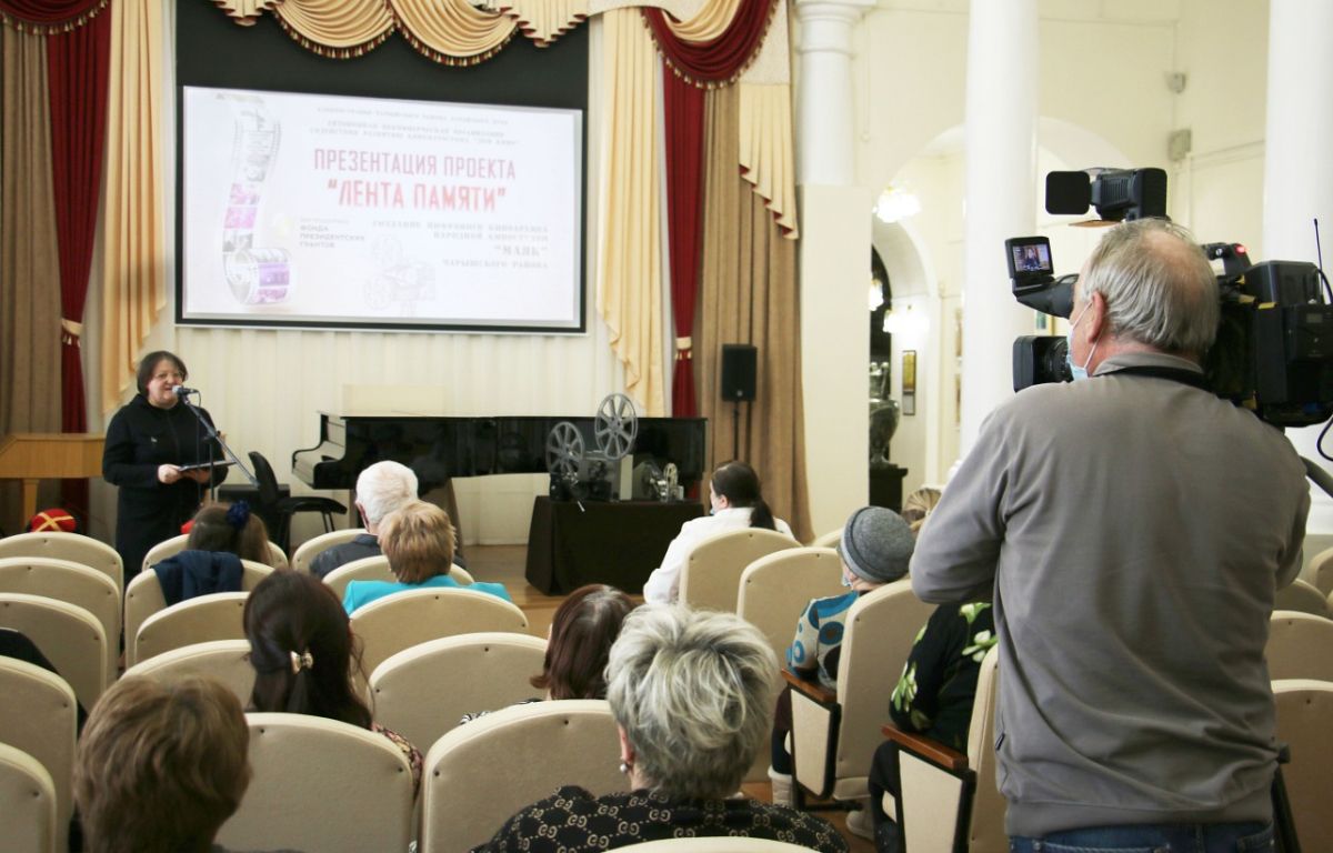 26 марта презентация проекта "Лента памяти", реализованного с использованием гранта Президента Российской Федерации, предоставленного Фондом президентских грантов, состоялась в Чарышском культурно-досуговом центре.