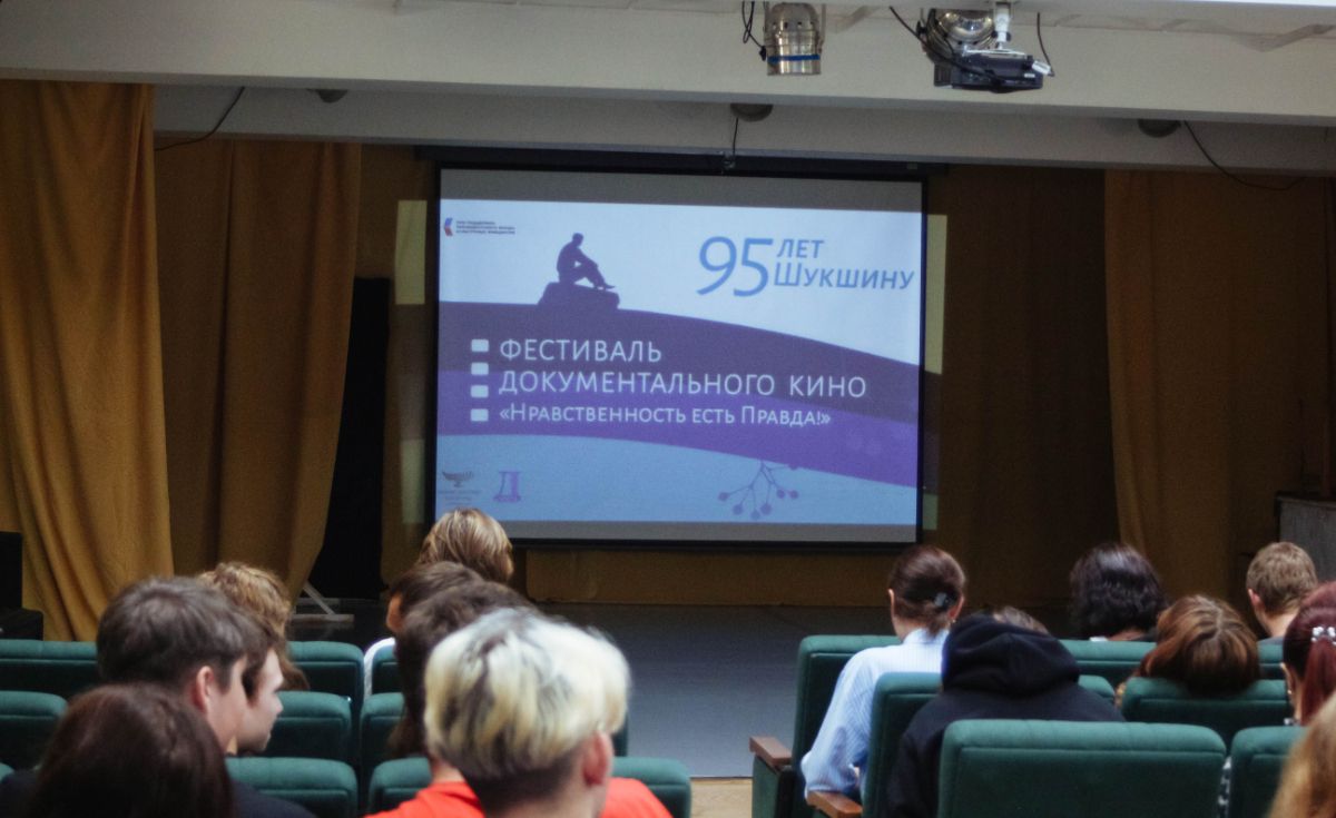 В рамках киномарафона фестиваля документального кино «Нравственность есть Правда!» историк кино Валерий Фомин познакомил студентов театрального отделения и отделения фото- и видеотворчества с основами профессии киноведа. Валерий Иванович рассказал о своём опыте работы на съёмочных площадках, в частности, во время производства фильмов Василия Шукшина.